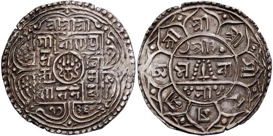 | | Nepal, Girvan Yuddha Vikrama, 1 Mohar, 1736 (1814), Silver, , KM:529 | | | Year 1736 of the Saka Era = year 1814 of the Gregorian calendar. | | FEATURES |