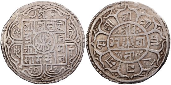 | | Nepal, Surendra Vikrama, 1 Mohar, 1792 (1870), Silver, , KM:602 | | | Year 1792 of the Saka Era = year 1870 of the Gregorian calendar. | | FEATURES |