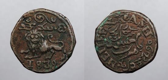INDIAN PRINCELY STATES: Mysore 1839 9.22 gm 20 Cash