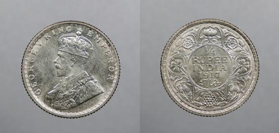 INDIA: British Colonial 1917 (c) George V 1/4 Rupee