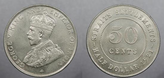 STRAITS SETTLEMENTS: 1921 George V 50 Cents