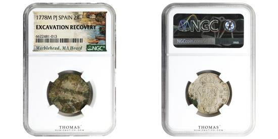 While modest in size, the Marblehead, MA Hoard is worthy of great numismatic intrigue. It contains coins from Bolivia, Brazil, Chile, Colombia, France, Mexico, Peru, Spain, and a single coin from the United States. As most know – and as the ubiquitous “Red Book” has popularized – foreign coins were not only legal tender during the formative years of the American Republic, but they were the backbone of commerce, serving to fill the gaps that American-made coins could not yet fill in. As a result, many collectors today rightly seek these coins that circulated freely in America, as they are as much a part of the American numismatic story as any. For those impassioned by not only coins, but their role in our nation’s beginnings, the Marblehead, MA Hoard offers some of the most tangible representations known. We hope you enjoy this rare opportunity to acquire items that while diverse in their formation, are quintessentially American.