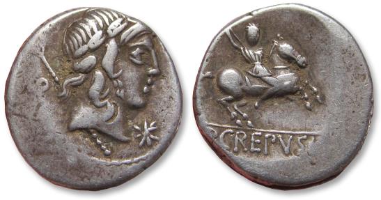 AR denarius P. Crepusius, Rome 82 B.C. - control numeral ??? (illegible) -