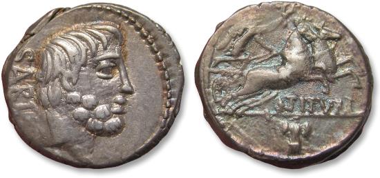 AR denarius L. Titurius Sabinus, Rome 89 B.C. - rare control symbol: military trophy -