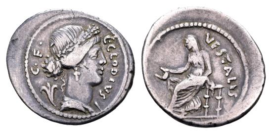 Roman Republic. C. Clodius C.f. Vestalis. AR Denarius (20 mm, 3.87 gram) Rome 41 BC