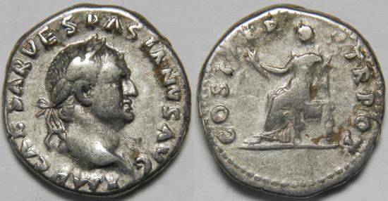 Roman Empire Vespasian AR Denarius (Rome, AD 70)