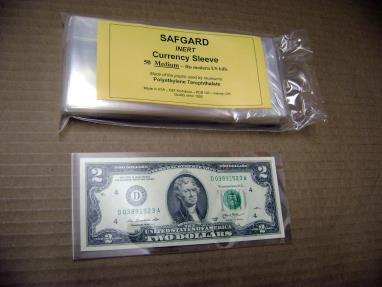 Safgard (TM) Inert Sleeves - Medium (Modern) Currency - 100-Pack MADE IN USA