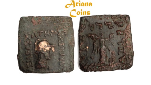 Indo-Greek Kingdom. Menander I Soter. Circa 155-130 BC. AE Quadruple Unit 19-19mm, 5.46gm. Helmeted head of Athena right / Nike advancing right, holding wreath and