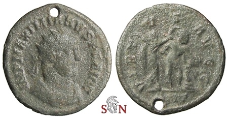 | Maximianus Herculius Antoninianus - Hercules leaning on club, crowned by Victory - Rare |