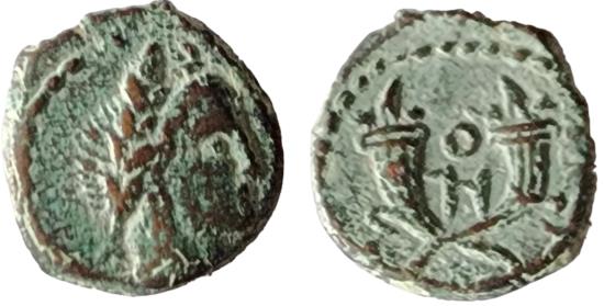 Apparently unpublished issue for Aretas IV. 9BC - 40 AC. Petra mint .Obv:Laureate head right. X { Year 4}.Rev:Tow  cornucopias; cross het ,O in between.16.8 mm - 2.7 g.