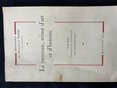 La monnaie, tresor d'art et d'histoire Published in Paris, 1958. by the Administration des Monnaies et Médailles, with a preface by Jean Babelon. A competition organized by the Paris Mint. Each exhibit is described in a short essay by the exhibitor. Contributors include all the then famous names of French numismatics. Paperback 234 pages, 36 b&w plates. Good clean copy inside. Some marks on the cover.