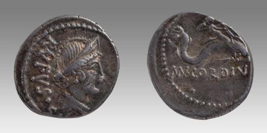 ROMAN REPUBLIC. Mn. Cordius Rufus. 46 BC. AR Denarius (18mm, 3.58 gm).