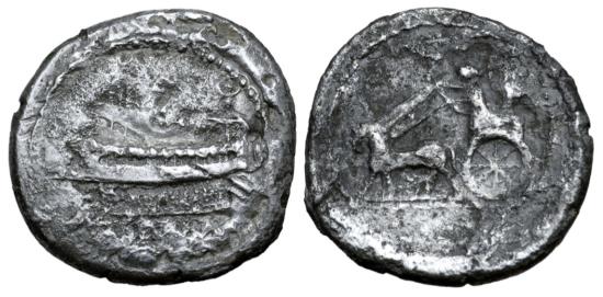 Phoenicia, Sidon AR Half Shekel. Ba`alšillem (Sakton) II, circa 401-365 BC. Phoenician galley over waves to left; [Phoenician B above] / Great King of Persia and driver in chariot drawn by two horses to left. 22mm, 5.40g. E&E-S Group IV.1.2; Betlyon 19; HGC 10, 237. 5.40g, 22mm. Very Fine some silver horn remaining.