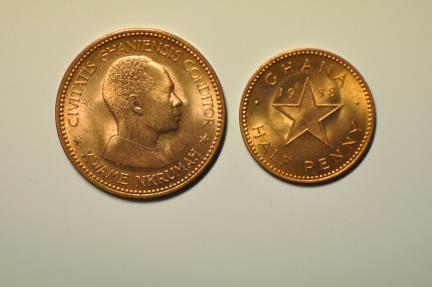 Ghana; 2 Coins: Bronze 1/2 & 1 Penny 1958 Dr. Kwame Nkrumah Red BU