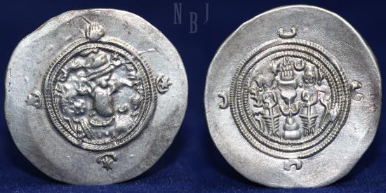 SASANIAN EMPIRE: KHUSRO II AD 591-628 Silver Drachm, Mint of YZ. Date 1, 4.09gm, EF & R