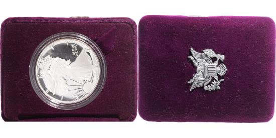 | | Coin, United States, Silver Eagle, Dollar, 1990, San Francisco, | | | Liberty walking left, Eagle with shield, Adolph A. Weinman | | FEATURES |