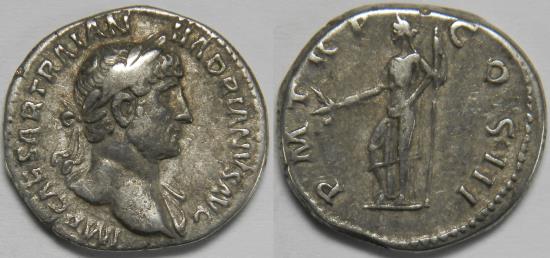 Roman Empire Hadrian AR Denarius (Rome, AD 119-120)