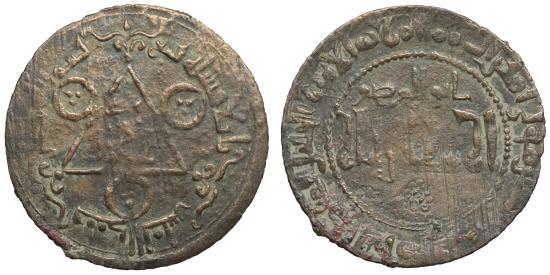 QARAKHANID. Ibrahim b. Nasr, 1017-1040, AE fals 2.19g – 26.8 mm. Ilaq, AH[40]9, A-3325, Kochnev-498, ruler cited as arslan khan buri tegin, with uncertain name in reverse margin, some weakness, RRR. VF+