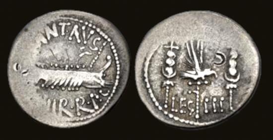 The Triumvirs. Mark Antony. Autumn 32-spring 31 BC. AR Denarius (17.5mm, 3.71 g, 3h).