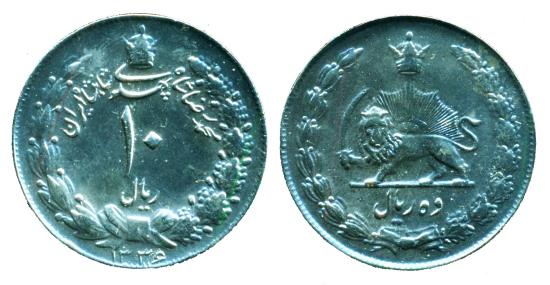 IRAN, PAHLAVI: 1957 large copper-Nickle 10 Rials SH 1336