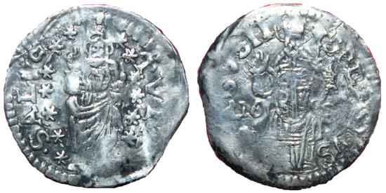 .SALVS.-.TVTA. Christ, nimbate, standing facing, right hand right raised in benediction, globus cruciger in left, surrounded by 19 stars. .S.BLASIVS-RAGVSII Saint Blaze standing facing, right hand raised in benediction, crozier in left, 16 / **across field. Plain edge Weight: 0.58 gr Diameter: 18.3 mm The Republic of Ragusa (Latin: Respublica Ragusina; Italian: Repubblica di Ragusa; Croatian: Dubrovačka Republika, lit. 'Dubrovnik Republic'; Venetian: Repùblega de Raguxa) was an aristocratic maritime republic centered on the city of Dubrovnik (Ragusa in Italian, German and Latin; Raguxa in Venetian) in Dalmatia (today in southernmost Croatia) that carried that name from 1358 until 1808. It reached its commercial peak in the 15th and the 16th centuries, before being conquered by Napoleon's French Empire and formally annexed by the Napoleonic Kingdom of Italy in 1808. It had a population of about 30,000 people, of whom 5,000 lived within the city walls. Its motto was "Non bene pro toto libertas venditur auro", which means "Liberty is not sold for all the gold in the world". |