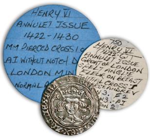 England, annulet issue groat dated 1422-1430, struck under King Henry VI in London. Very Fine condition. N 1423; S 1835. Ex Dix Noonan Webb 9 December 2010, lot 431; The Richard Renshaw Collection. 3,64 g. Protocol no. 5460