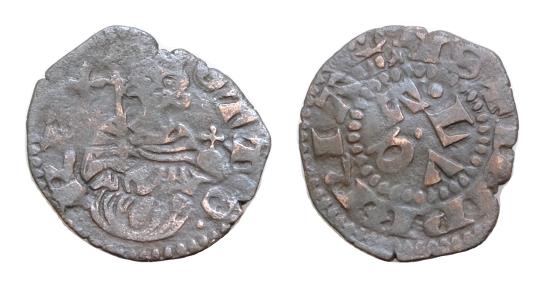 LUCCA. Castruccio degli Antelminelli detto Castracane (1316-1328) Castruccino AE & BI 13-14mm (g. 0,5). OTTO REX Il Re Ottone IV a mezza figura di fronte, tiene nella ds. lo scettro e nella sn. il globo crucigero. R/ IHPERIALIS Lettere LVCA disposte a croce. CNI 1/5; MIR 130. MI RARO La moneta fu coniata dopo la vittoria di Altopascio, nel 1325, dove il Castruccio sconfisse i fiorentini con l'intento di costruire un grande stato ghibellino in Toscana. - BB Good Very Fine , Rare