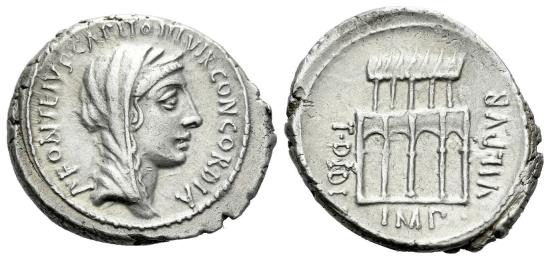 Obv. P·FONTEIVS·CAPITO·III·VIR CONC ORDIA. Diademed and draped head of Concordia right.