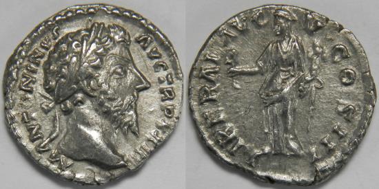 Roman Empire Marcus Aurelius AR Denarius (Rome, AD 169) M ANTONINVS AVG TR P XXIII, laureate head right / LIBERAL AVG V COS III, Liberalitas standing left, holding abacus and cornucopiae. 3.30 grams, 18 mm. Extremely Fine. RIC 206, RSC 412. Comes with a photo certificate from Numismatik Naumann, Vienna. |