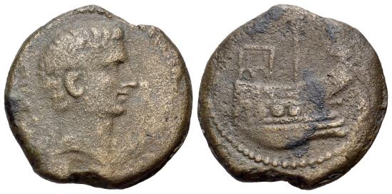 Octavian (c. 40 BC). Gaul, Narbo. Æ 29.5mm. R/ Prow of quinquireme
