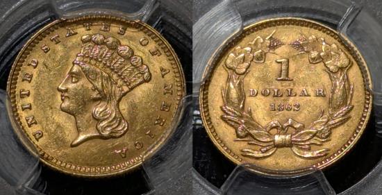 1862 Gold Dollar. PCGS MS62