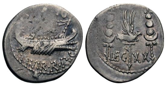 Roman Imperatorial. Mark Antony. AR 'Legionary' Denarius.