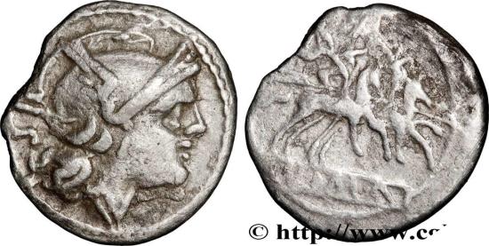 Country: ROMAN REPUBLIC - ANONYMOUS Year: c. 214-213 AC. State/Grade: XF/VF Nominal: Sesterce Weight (g): 0,85 Material: silver Catalog number: B.4 BMC/RR.13 BMC/RR.13 CRR.142 RRC.44 /7, pl. 9/12 RCV.46 (440$)