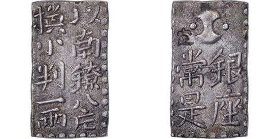 | | Japan, Tokugawa, 2 Shu, 1772-1824, Edo, Silver, | | | 2 Shu "Ko-Nanryō Nishugin"; Tokugawa Shogunate - Go-Momozono (1771-1779); KM C 13, JNDA 09-47, DHJ 9.71-9.74 | | FEATURES |