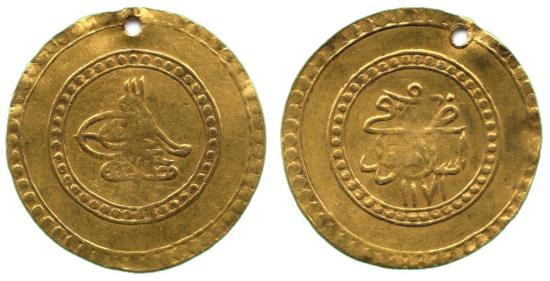 OTTOMAN, Mustafa III (1171-1187h), AV 1½-Findik, Islambul 1171h, year 5, 4.76g (OC 26-015; ICV 3354), pierced as usual, otherwise about very fine, rare Provenance: Sultan Collection (Part 2), Künker Auction 210, 18 June 2012, lot 1149