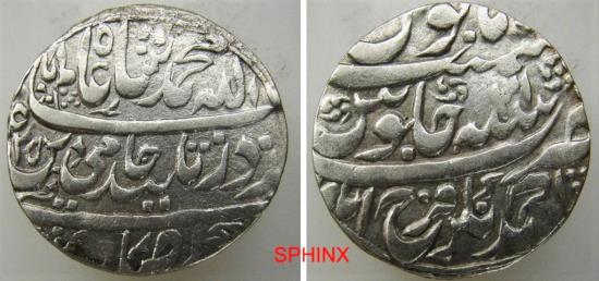 | 632EE22) BANGASH NAWABS, Amin Al-Dawla, 1210-1217 AH / 1796-1802 AD, AR RUPEE (10.91 gr, 26 mm) in the name of Shah Allam II, Ahmadnagar- FARRUKHABAD mint dated 1205 / 31 , KM 86.2 |