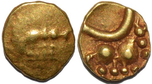 INDIA, HOYSALA: Anonymous Gold fanam or hana, Vira Raya type. SCARCE + CHOICE!