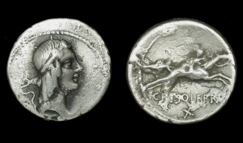 Roman Republic, L. Calpurnius Piso Frugi, Denarius, Horseman Galloping reverse!