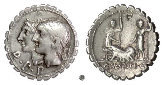 Roman Republic, C. Sulpicius C.f. Galba. AR Serrate Denarius, Rome mint 106 BC