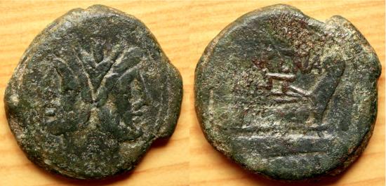Republic L. Licinius Murena AE As Janus/Prow . Circa 169 –158 BC