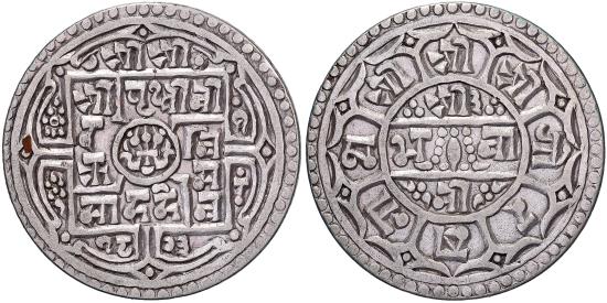 | | Nepal, Prithvi Bir Bikram, 1 Mohar, 1823 (1901), Silver, , KM:651 | | | Year 1823 of the Saka Era = year 1901 of the Gregorian calendar. | | FEATURES |
