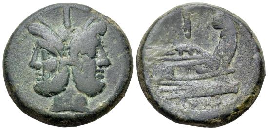 ROME REPUBLIC Anonymous, Rome, after 211 BC. Æ As Head of Janus. R/ Prow of galley