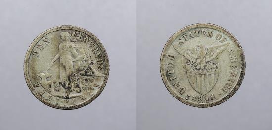 PHILIPPINES: 1911-S San Fran. mint 10 Centavos