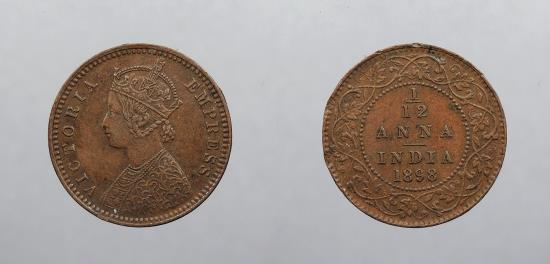 INDIA: British Colonial 1898 Victoria 1/12 Anna
