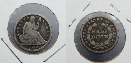 1840 Seated Liberty 5 Cents (Silver) No Drapery