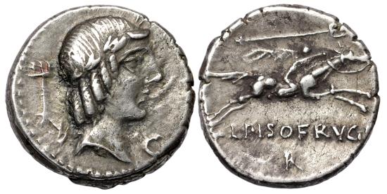 Roman Republic Denarius L. Calpurnius Piso Frugi.90-89 BC.