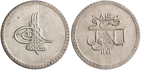 Ottoman: Mustafa III (1757-1774), silver kurush / 40 para (18.50g), Islambul (Istanbul) mint, accession year AH 1171 (1757 CE), year [11]84.