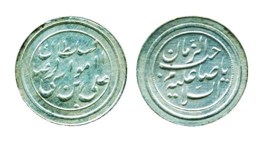 Obverse: al-Sultan Ali ibn Musa al-Reza in double circle.