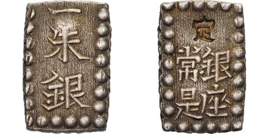 | | Japan, Kōmei, 1 Shu, Kaei, 1853-1865, Edo, Silver, | | | 1 Shu "Kaei Isshugin"; Tokugawa Shogunate - Kōmei Tennō (1846-1867); KM C 12, JNDA 09-53, DHJ 9.85-9.86., Identical to the 1 Shu ‘Ansei’ coins. | | FEATURES |