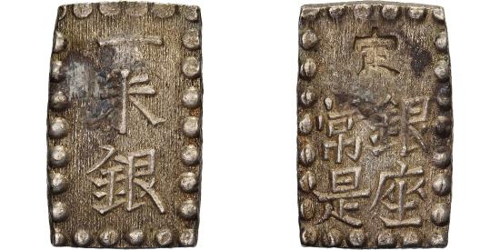 | | Japan, Kōmei, 1 Shu, Kaei, 1853-1865, Edo, Silver, | | | 1 Shu "Kaei Isshugin"; Tokugawa Shogunate - Kōmei Tennō (1846-1867); KM C 12, JNDA 09-53, DHJ 9.85-9.86., Identical to the 1 Shu ‘Ansei’ coins. | | FEATURES |